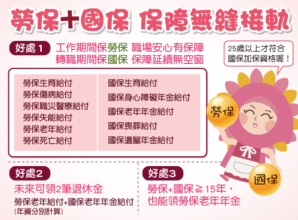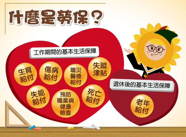 勞保是提供我們工作期間及工作退休後的基本生活保障: