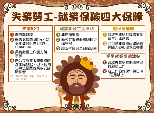 就保在失業層面的保障共有4大給付,但要記得要屬於「非自願離職」才符合資格: