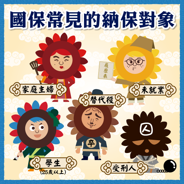 像是家庭主婦、年滿25歲以上的學生、替代役等都是國保常見的加保對象喔!