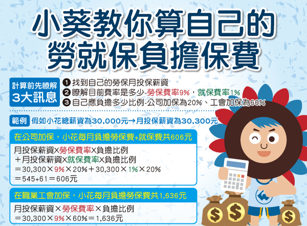P.S. 通常公司的勞保費和就保費會放在一起算,但職業工會加保只有勞保、沒有就保喔!