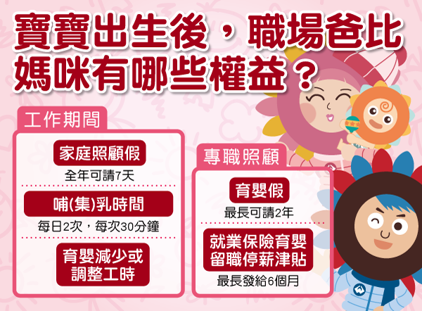 寶寶出生後,職場爸比媽咪有哪些權益~~請看勞保局的部落格詳細解說喲~