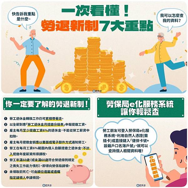 ①每位勞工都擁有自己的「#退休金個人專戶」,退休金累積帶著走 ,不因「勞工轉換工作」或「事業單位關廠、歇業」而受影響。