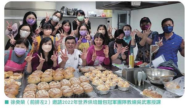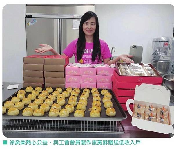 從熱鬧的大街轉進桃園平鎮靜謐的巷弄間,一陣陣麵包香氣撲鼻而來,走進桃園市百貨食品銷售員職業工會專屬的烘焙坊,麵團攪拌機正奮力地作業著,「這個要做巴斯克,再攪拌一下就好,那個綠豆椪要趕快進烤箱」,人都還沒坐定,就聽見桃園市百貨食品銷售員職業工會創會理事長徐癸榮指揮若定,一邊顧著剛出爐的吐司,一邊微笑的打招呼。