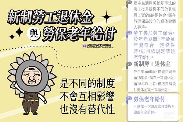 【勞保老年給付】是根據勞保條例所提供的社會保險給付制度。勞工參加勞工保險,於年老退職,年齡及年資符合一定條件時,即可依規定請領老年給付。
